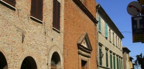 Costruita alla fine del XVI secolo, ha la facciata ornata da paraste angolari a mattoni so...