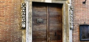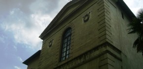 Presenta la facciata a capanna, con bugne regolari di travertino disposte "a filarett...