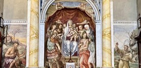 Di origine tardo-gotica, accoglie sull'altare maggiore un polittico, Incoronazione della V...