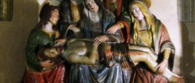 Questa composizione scultorea di terracotta dipinta si trova in una nicchia al di sopra dell'altare dell'Oratorio. Raffigura la Madonna che tiene tra le braccia il Cristo morto, circondata da San Giovanni e dalle tre Marie. Alcuni attribuiscono l'opera allo scultore cortonese Bernardino Covatti.