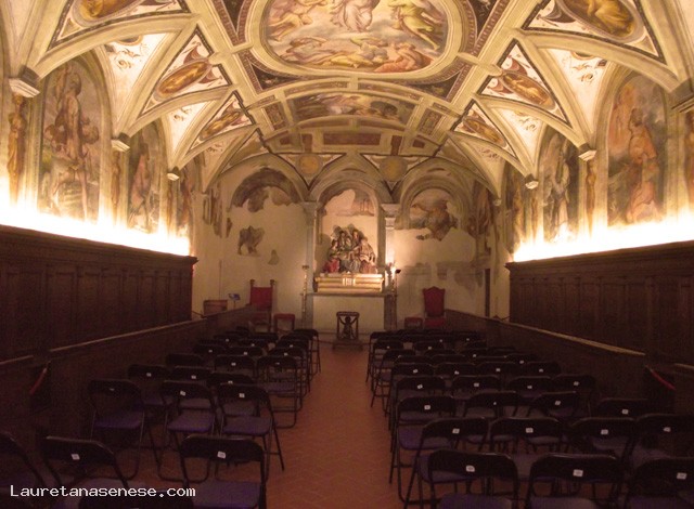Tra le opere più importanti si devono segnalare l'Annunciazione del Beato Angelico, la Madonna in gloria di Bartolomeo della Gatta, la Deposizione di Luca Signorelli, l'Estasi di S. Margherita del Crespi.