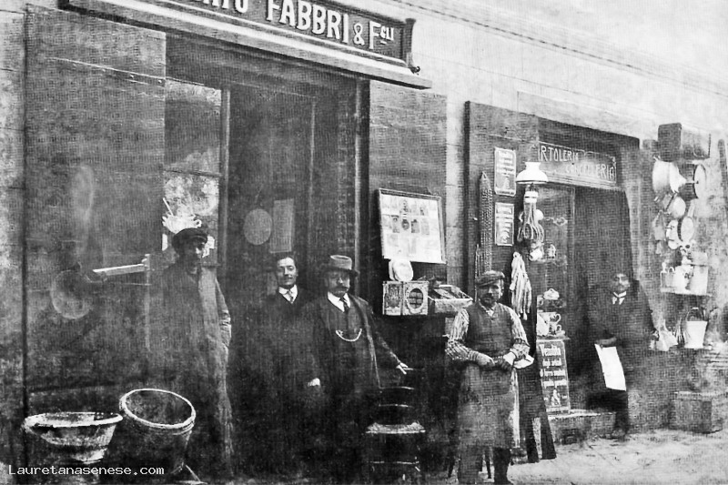 Torquato Fabbri e i suoi figli avevano un emporio che vendeva di tutto: dai casalinghi agli oggetti da lavoro e le munizioni per le armi da caccia. L’attività più nota della ditta era il laboratorio fotografico che, per alcuni decenni ha immortalato i luoghi e le persone del paese.