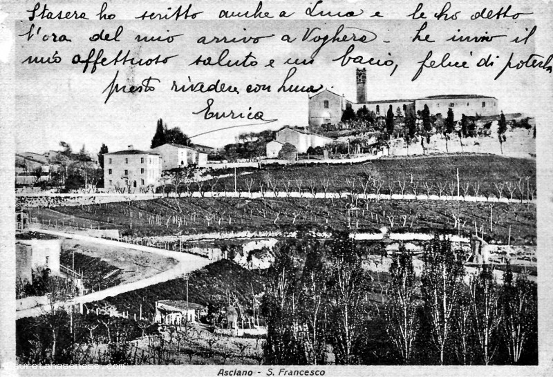 Da questa cartolina illustrata si capiscono con chiarezza gli interventi del piano regolatore fascista, varato nel 1924 e che interessava il territorio immediatamente a sud del centro storico, fino alla ferrovia Siena - Chiusi.