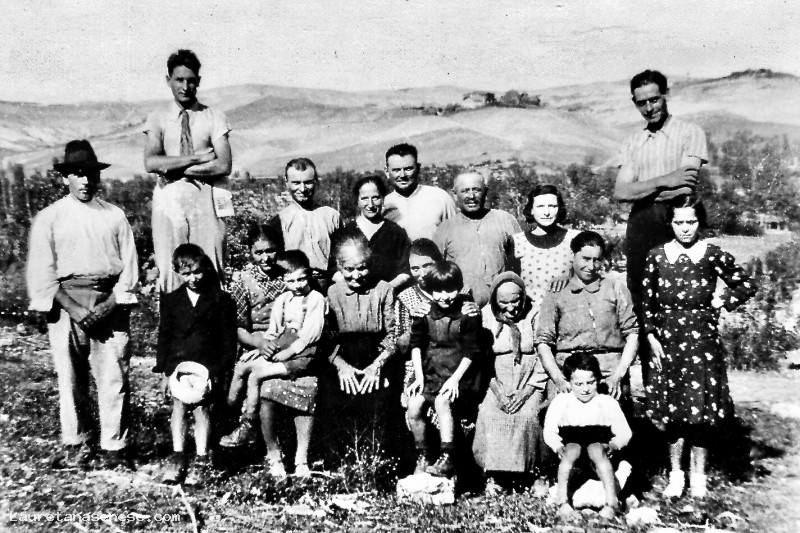 La famiglia Boccini al completo quando facevano i contadini a Torrentino, podere vicino all’Ombrone e raggiungibile dalla strada che porta a Monte Sante Marie.