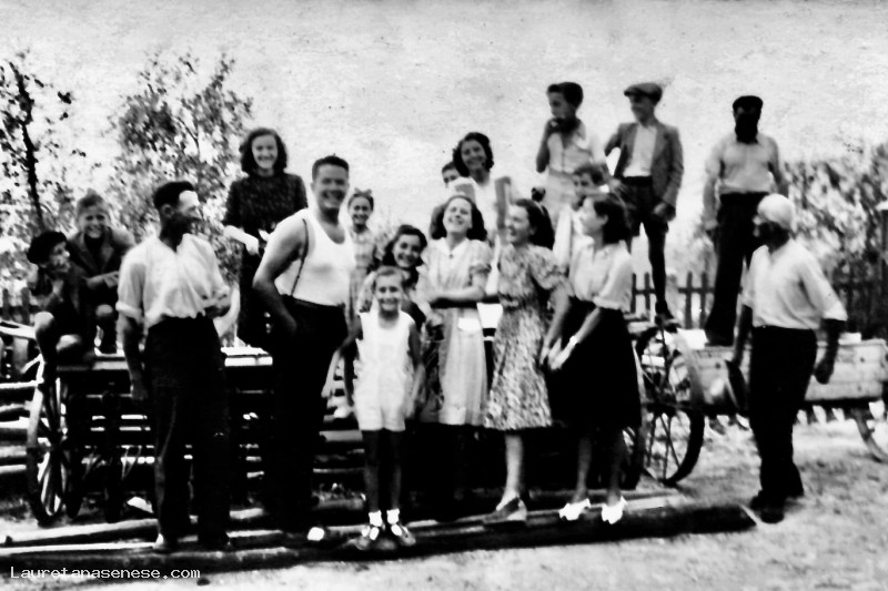 Gruppo di abitanti del piccolo borgo collegato alla Villa padronale. Partendo da sinistra, si riconoscono:
