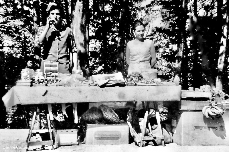 Foto che fa riflettere su come si viveva nell'immediato dopo guerra. In occasione di una festa allora molto frequentata, Vilma Bernini e il cugino Giovanni Anselmi, dietro un banco di vendita con "qualcosa" sopra da vendere.