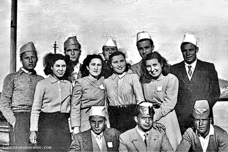 Quante vecchie conoscenze tutte insieme, in posa per una foto di gruppo fra i binari della Stazione. Si può supporre che si trovassero li per la tradizionale scampagnata del lunedì di Pasqua o del Primo Maggio, ma i bigliettini appesi sul petto di alcuni fanno pensare alla partecipazione collettiva ad un evento sconosciuto.