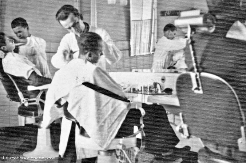 Il Barbiere Tonino Tozzi nel suo negozio che si trovava dove c'è stata l'edicola di Sandra, all'angolo fra via Mazzini e corso Matteotti.