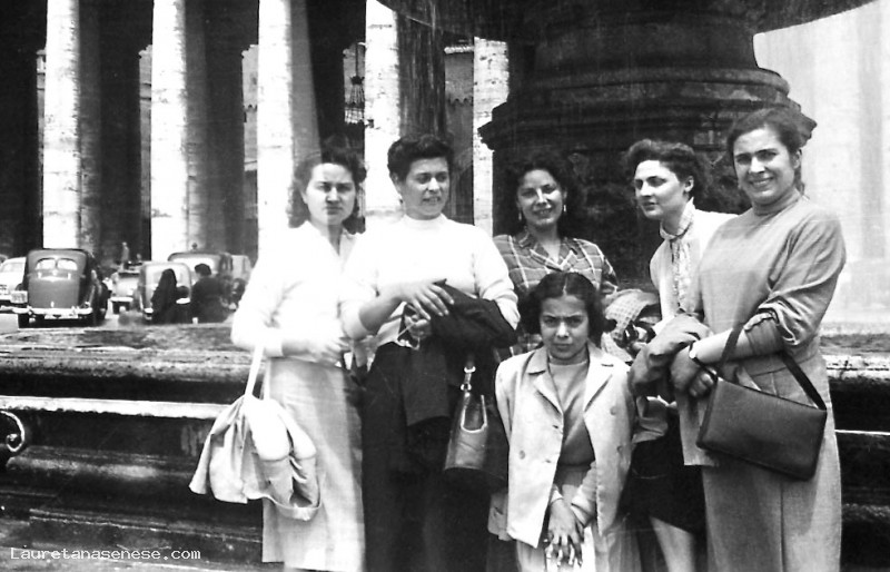 Le giovani donne ascianesi in Piazza San Pietro, accanto ad una delle fontane.