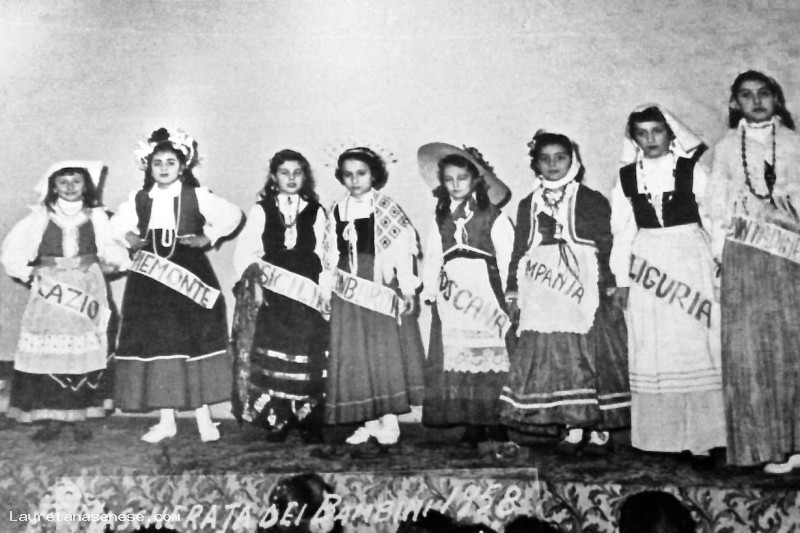 In questa occasione, forse nel periodo di Carnevale, sul palco sono stare fotografate un gruppo di ragazzine con costumi riferiti alle Regioni d'Italia.