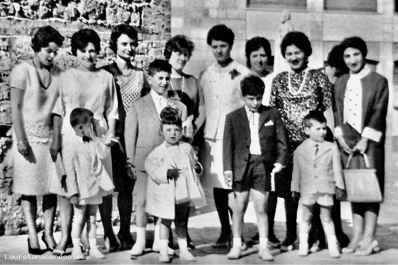 Foto ricordo di un gruppo di persone, donne e bambini, invitate alla Comunione di Massimo Pagliantini, figlio di Hervè e Maria Turillazzi.