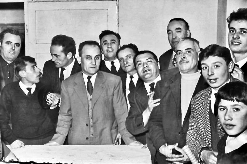 1962 - Da Pietro, un'allegra brigata che brinda con il Vecchia Romagna Asciano