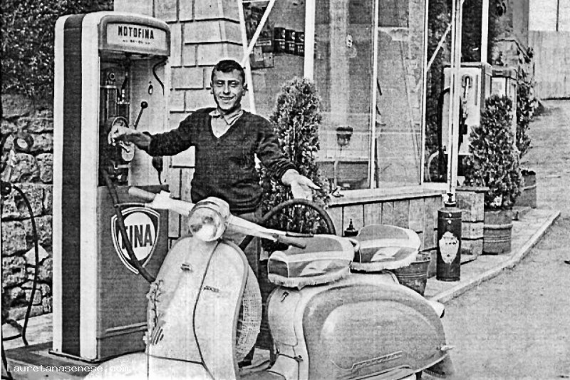 Qui è ritratto al distributore della "Fina", che dagli anni cinquanta all'ottanta si trovava davanti all'attuale caserma dei carabinieri, sotto le mura cittadine.