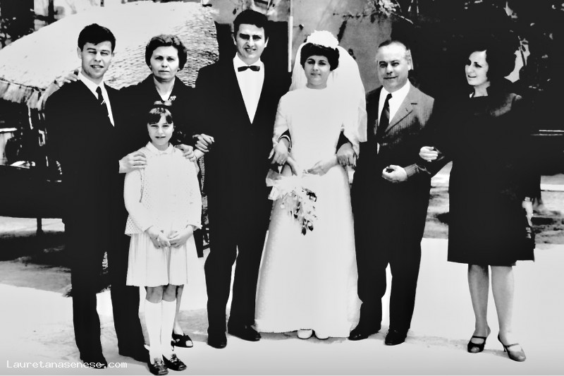 Classica foto ricordo effettuata a rotazione con i parenti presenti al matrimonio. Si riconoscono da sinistra in alto: