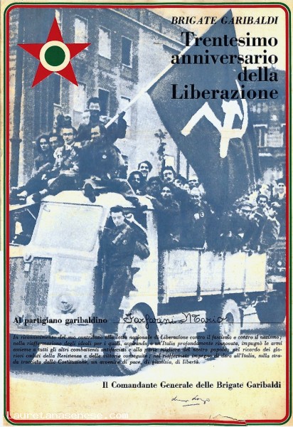 1974, 25 Aprile - Attestato di appartenenza per il Trentennale della Liberazione Asciano