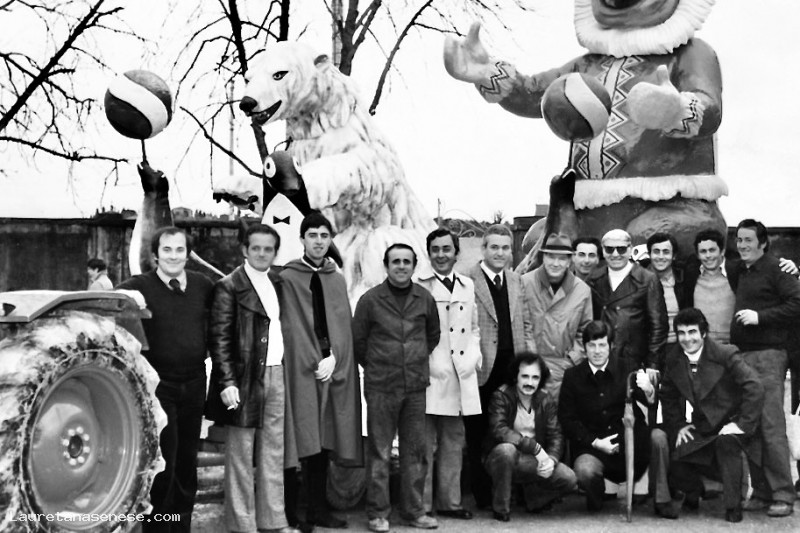 Durante una sosta del carro al cancello dei Macelli, dello stadio Marconi, i componenti la Pro loco di allora hanno colto l'occasione di una storica foto di gruppo.