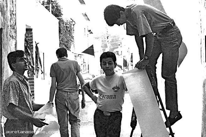 1988 - Addobbi con strisce di carta giallo-rosse Asciano