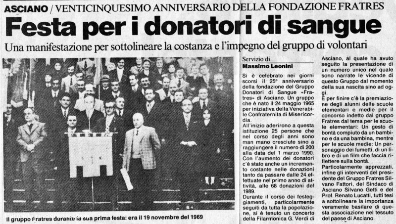 1990, 25 Maggio - Articolo sul 25° dei Donatori di Sangue Asciano