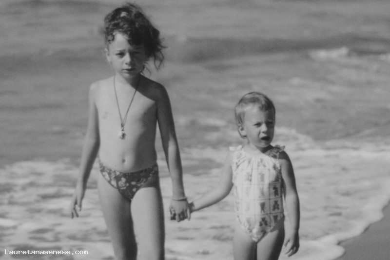 Le due sorelle, figlie di Claudio e Alessandra Fratagnoli, in vacanza al mare: