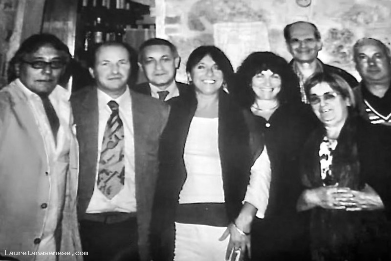 Tutti gli addetti alla locale filiale Monte Paschi fotografati durante la pausa pranzo, davanti al bar di Piero Moscatelli.
