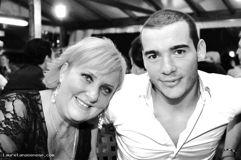 Foto di famiglia di mamma e figlio, ambedue conosciuti parrucchieri locali: