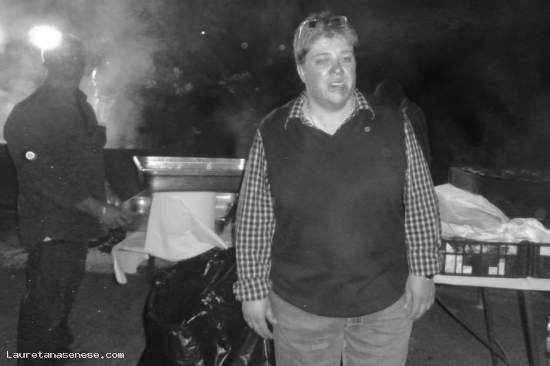 Cecilia, il Governatore della Misericordia controlla i lavori nella cucina esterna allestita fuori dal garage della Misericordia.