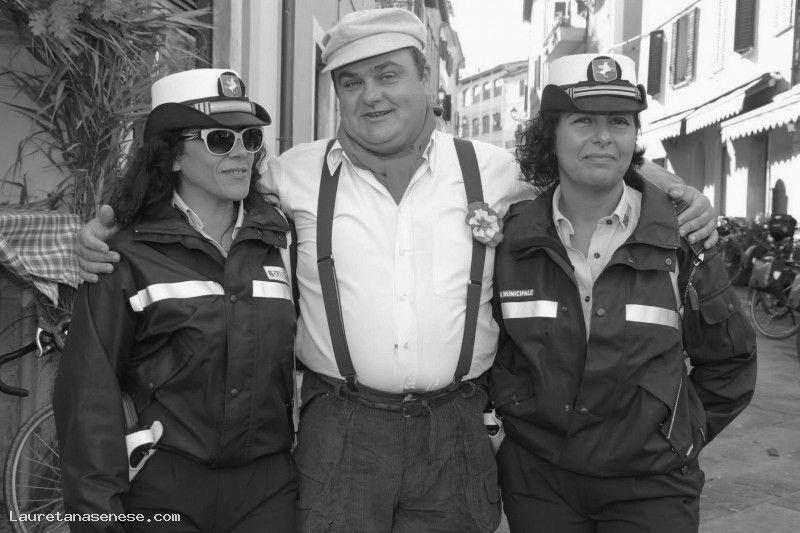 Durante il passaggio dell'Eroica nel centro storico, "Luca si preoccupa di intrattenere buone relazioni con i vigili per evitare grane":