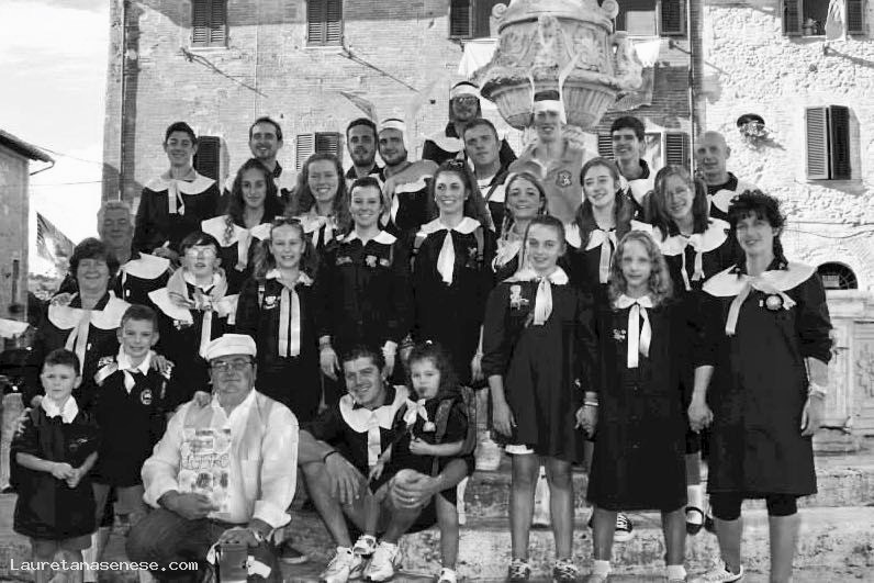 Nella settimana del Palio dei Ciuchi, ogni Contrada organizza una mini rappresentazione teatrale, denominata "scenetta". Una sera vengono rappresentate le sette "scenette" e assegnato un riconoscimento alla migliore. Nella foto, gli organizzatori e gli attori che hanno partecipato alla "scenetta" della Contrada di Piazza.
