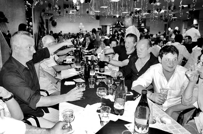 Cena della Vittoria, Sabato 4 Ottobre 2014, al salone delle Piramidi. Alcuni contradaioli intenti a festeggiare.
