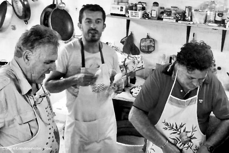 I tre cuochi all'opera durante la cena propiziatoria nella