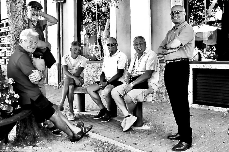 Un angolo di Piazza Garibaldi riparato dal caldo sole estivo, ideale per fare due chiacchiere.