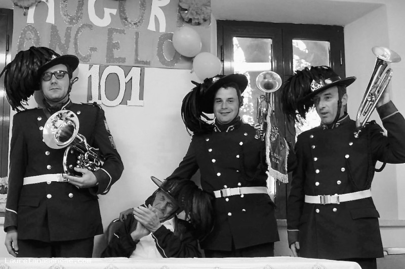 Alcuni ex bersaglieri locali hanno voluto festeggiarlo in divisa e con tanto di tromba.