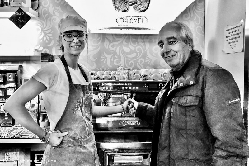In un clima di allegria festaiola, Ignazio Badolato, pur di farsi fotografare con una delle belle "Garbate", gira dietro il banco e prova a fare il caffè, ma la barista, GARBATAMENTE, glielo impedisce.