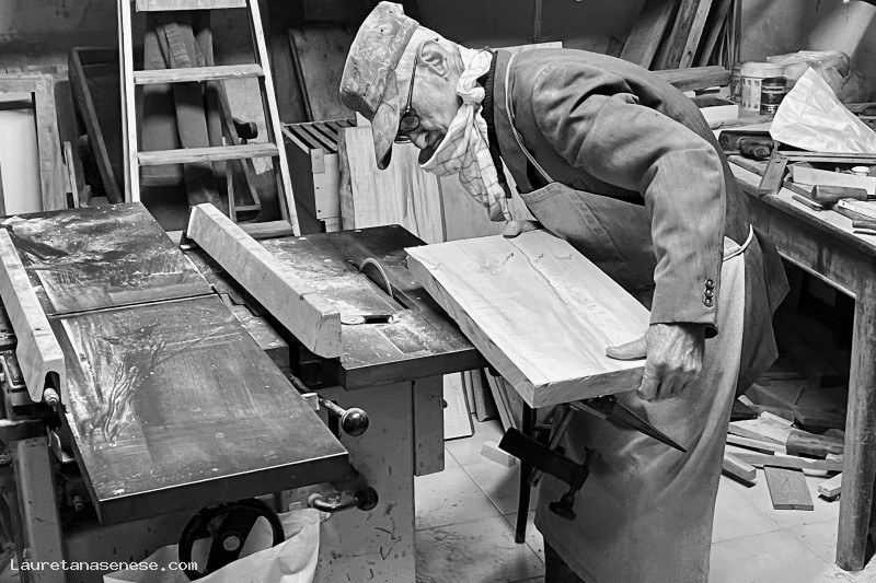 Prima di disturbarlo, siamo stati per almeno 5 minuti a guardare, sorpresi per le sue ancora notevoli capacità lavorative da "artigiano del legno".