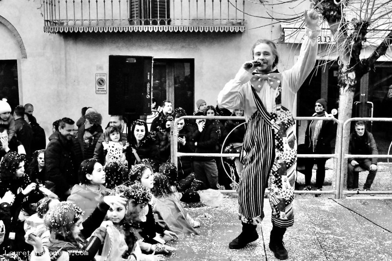 Giacomo Equatori, intrattiene la piazza nella prima domenica del Carnevale di Meio.