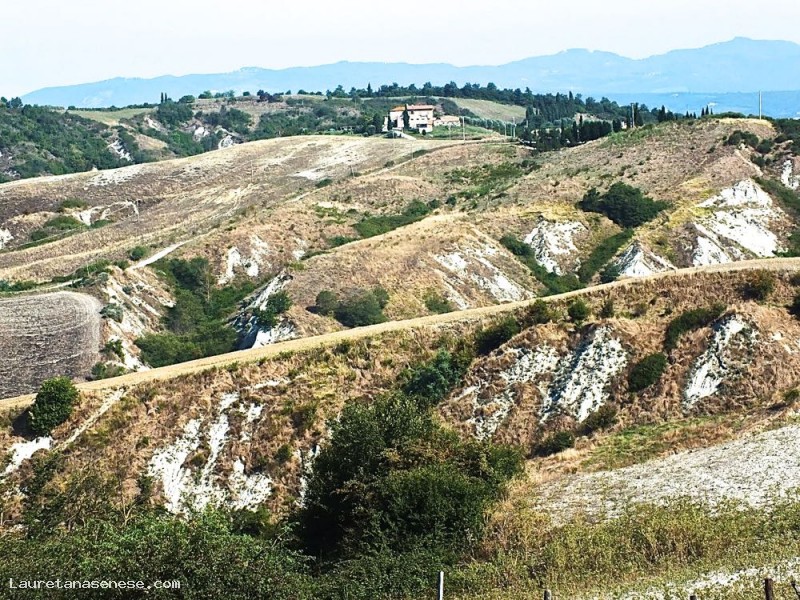 The landscape of Crete that can be seen is wide and varied and includes deep gullies similar to those that characterize the area of Monte Oliveto Maggiore.