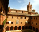 Founded in at the beginning of the XIV century from the blessed Bernardo Tolomei, in the place where he retired in hermitage previously, the imposing Benedictine-mass is situated in the southern area of the commune of Asciano, a green oasis at the edge of the “ Accona’s desert”, that is a place characterized by rough and steep calanques. The church, till today to visit, was built in the XV century together with the adjacent cloister, where catches the eye, because of its undoubted beauty and its excellent state of preservation, the cycle of Renaissance frescos, which represent Saint Benedict’ life, a work of Luca Signorelli and Antonio Bazzi da Vercelli, known as “Sodoma”. Of great interest is also the bibliographic collection, kept in the library of the attached monastery.