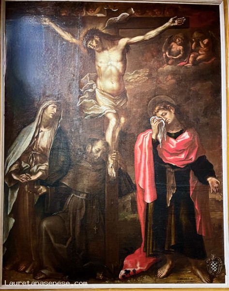 In particular, in the canvas for San Francesco, Nasini seems to have drawn inspiration from the "Crucifixion" that Mei had painted for the Oratory of Santa Croce, from which he drew inspiration for the pose of Christ and, above all, that of the Madonna.