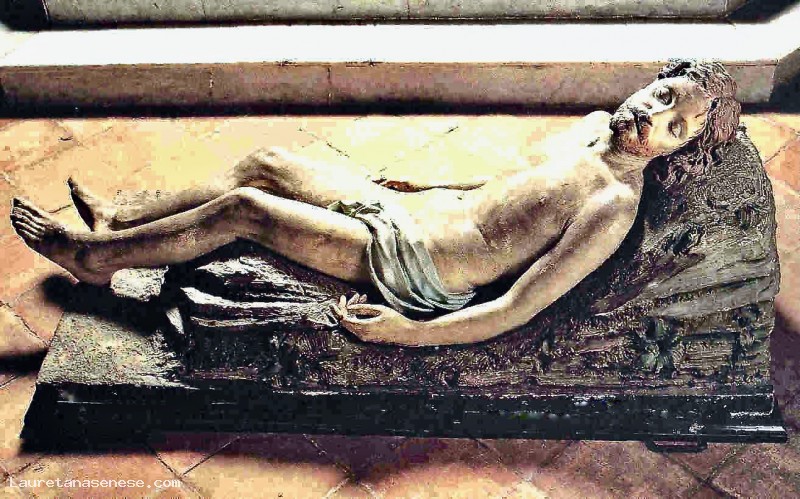 In fact, on the evening of Good Friday this sculpture is carried in procession through the streets of the town, followed by the statue of Our Lady of Sorrows.