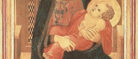 Si tratta di un'opera giovanile, ancora immatura. In questa tavola le fisionomie di Maria e del Bambino sono poco dolci. Le figure sono di una presenza statuaria e possente, la rappresentazione della Madonna è frontale, alla maniera bizantina e ricorda le opere della seconda metà del 1200. Il manto della Madonna è reso con un colore compatto e con scarsa caratterizzazione a pieghe del panneggio. I volti hanno una caratterizzazione chiaroscurale non eccelsa e il trono è un semplice seggio di legno spigoloso che riporta decorazioni geometriche, un’architettura ridotta ai minimi termini. Il pregio maggiore della tavola è il suo vivo naturalismo nella resa dei personaggi e dei personaggi: le mani di Maria reggono il bambino piuttosto che attorniarlo. La mano destra è inclinata rispetto all’avambraccio a reggere la gamba destra di Gesù. Le dita di entrambe le mani non sono parallele, ma sono disposte in modo da reggere meglio l’infante. Soprattutto spicca l’indice della mano destra che ha un naturalismo funzionale al gesto mai visto prima. Il Bambino guarda la madre. I suoi polsi e lo scorcio del suo piede sinistro mostrano un bambino che si agita e scalcia come un vero infante.