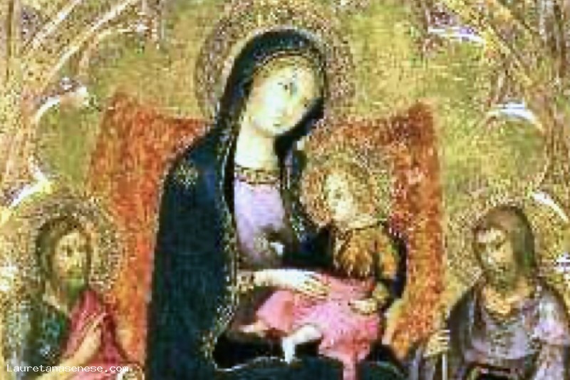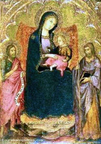 Pannello centrale di un trittico raffigurante la Madonna con il Bambino ed ai lati i Santi Giovanni Battista e Giacomo. Attualmente si trova al Philadephia Museum of Art Tempera e oro lavorato su pannello verticale. Pannello verticale 28.3 x 20.3 cm