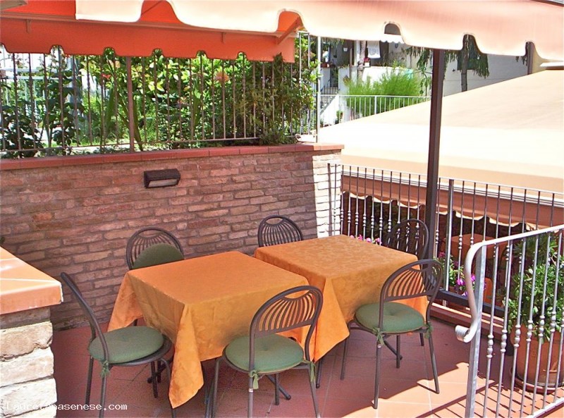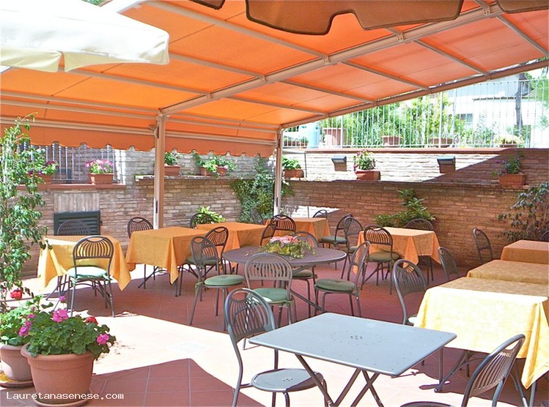 The hotel La Pace has a restaurant open to all with indoor dining room and tables in the garden.