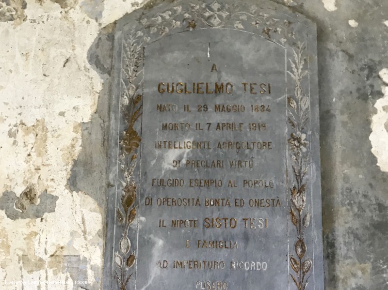 The families that dominated the local agricultural scenario, until the Second World War, used to build in their territories a family chapel where, in addition to the carrying out of private religious rites, the owners were buried at the time of the passing.