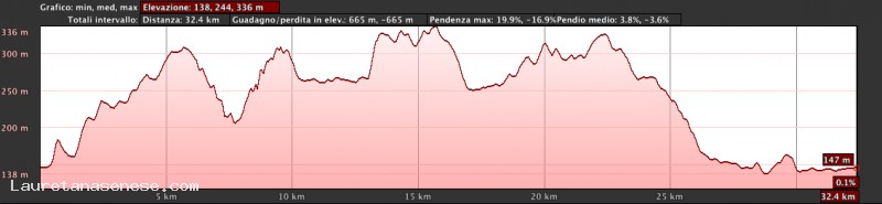 Percorso di media difficoltà, per metà su asfalto e per l'altra metà su strade bianche molto sugges