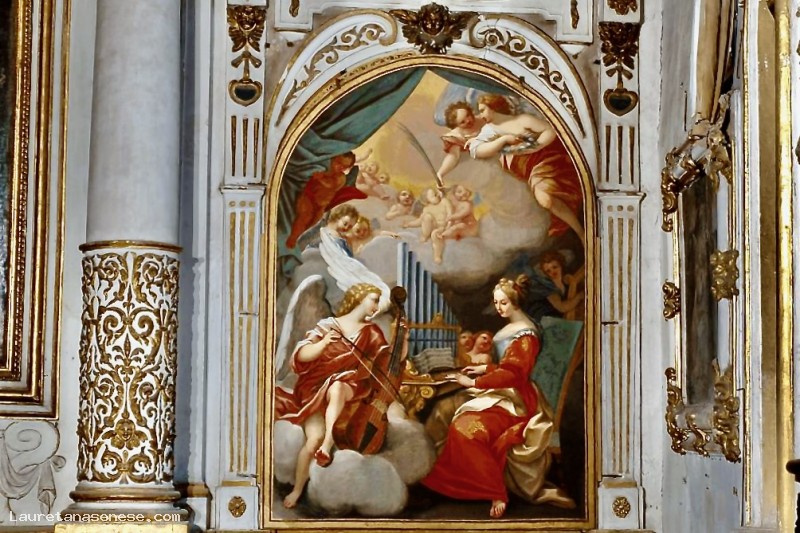 The two works on the sides of the altar, the canvas with Saint Cecilia playing the organ dating back to the first quarter of the seventeenth century and attributed to Antonio Buonfigli and the fresco with the Concert of Angels signed by Ventura Salimbeni and dated 1612, recall the passion for music of the young Augustinian nuns of Santuccio who played and loved to dedicate themselves to singing.