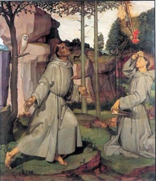 Da documenti ritrovati nell'archivio dell'ospedale locale, la Fraternita di Santa Maria della Misericordia commissionò l'opera il 2 ottobre 1486 per collocarla nell'altare detto "delle stimmate" all'interno della chiesa di San Francesco.