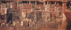 L'affresco degli Effetti del buon governo in città e in campagna  è sulla parete successiva all'Allegoria del Buon Governo; doveva rappresentare con un esempio eloquente gli obiettivi dei governanti della città.