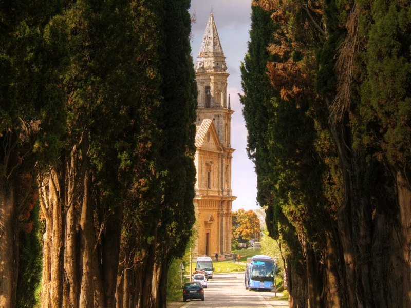 It starts from Montepulciano in the direction of sports which goes past the right on a dirt pleasant saliscendi.per reported in approximately 1 km and a half. Leave the main dirt road that goes back to the intersection of S. Biagio to bend to the left again on excavation at the farm Arden turn right uphill on a dirt road that runs along susineto field and that leads us in a short asphalt linking Chianciano Montepulciano, and the cross towards the industrial area and Totona at a crossroads go straight on asphalt in the steep climb we follow the road until it comes down to right and just past a farm, turn left on dirt road field (barrier) follow up to a flat stretch of abandoned farm (bar) where you go left in the firm and bumpy downhill. Once in the valley climb laboriously up the hill to enter a forest after about 300m you come to a fork where you turn left again on a very steep climb. Once out of the woods paves the way for granting us a little breathless and wonderful views, the villa is exceeded pianoia and continue on the road There comes hours dirt road that leads to an asphalt road that must be taken after a left at the first intersection you go strappetto right in the direction of Mary Magdalene hermitage that we reach after turning left at a building and a wide dirt path uphill through the woods. Once you reach the hermitage we recommend a visit to the incomparable beauty of the place, the track continues along the walls of the convent of trail and then take another left on very rocky trail initially continue through the woods in a fairy tale leaving a first turning right and going right to the next, the path was a clearing in the woods and go straight downhill piu'avanti then you go right then left again downhill paths emerging from the left and we put on a wide dirt road, then steep descent before light. After passing a villa with a sharp left turn right going around the farm and after passing a bar we go decidedly downhill to the valley go up the hill with some hard to tear up and get out into the woods about 1km after piu'avanti up and down the farm drive along the beautiful lift with beautiful views over the reserve and Castelluccio nat.di Pietraporciana until you reach a dirt road and follow it uphill to the right first and then up and down. We arrive in the asphalt loc.Pianoia gia'percorso we had before, but omit the deviation than before continuing to the hermitage on the tarmac after about 3 miles of false flat descent brings us to the junction of white villa we left and arrive quickly at the junction of s.biagio. continue straight on road with cypress trees reaching the temple go around taking away the reeds on the left that we follow through. After passing under 2 bridges you go to the stop right after reaching the starting point of around 700m.