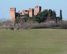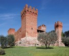 The Castle of Gallico, with its five towers in stone and red bricks, is a wonderful example of a fortified farm: its imposing structure rises solitary on the tableland of the Crete in the Commune of Asciano, not far from the village of Montecalvoli, to the happenings and owners of which it has been linked for a long time. The sienese family of Tolomei bought the castle of Gallicoin 1319 and ,towards the end of the century, it enlarged the already existent tower for keeping there the products of the land; then it became a castle-grancia. The Griffolis, rich merchants of silk from Montepulciano, bought it in the first half of the XV century and the sienese republic obliged them to keep there a garrison of soldiers to defend this important strategic outpost. Passed through different owners, towards the end of the XVIII century, it was given to the Hospital of Santa Maria della Scala of Siena, and then given back to the family Vallesi and, at the beginning of the XIX century, it passed in heritage to the family Terrosi and then, in the first half of this century, to the family Fei and to the Biagini of Monte San Savino. Recently, offer the buying made by a well-known roman entrepreneur, it has been carefully restored and enclosed, so that, unfortunately, now you can admire it only from far off.