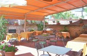 The hotel La Pace has a restaurant open to all with indoor dining room and tables in the garden.
